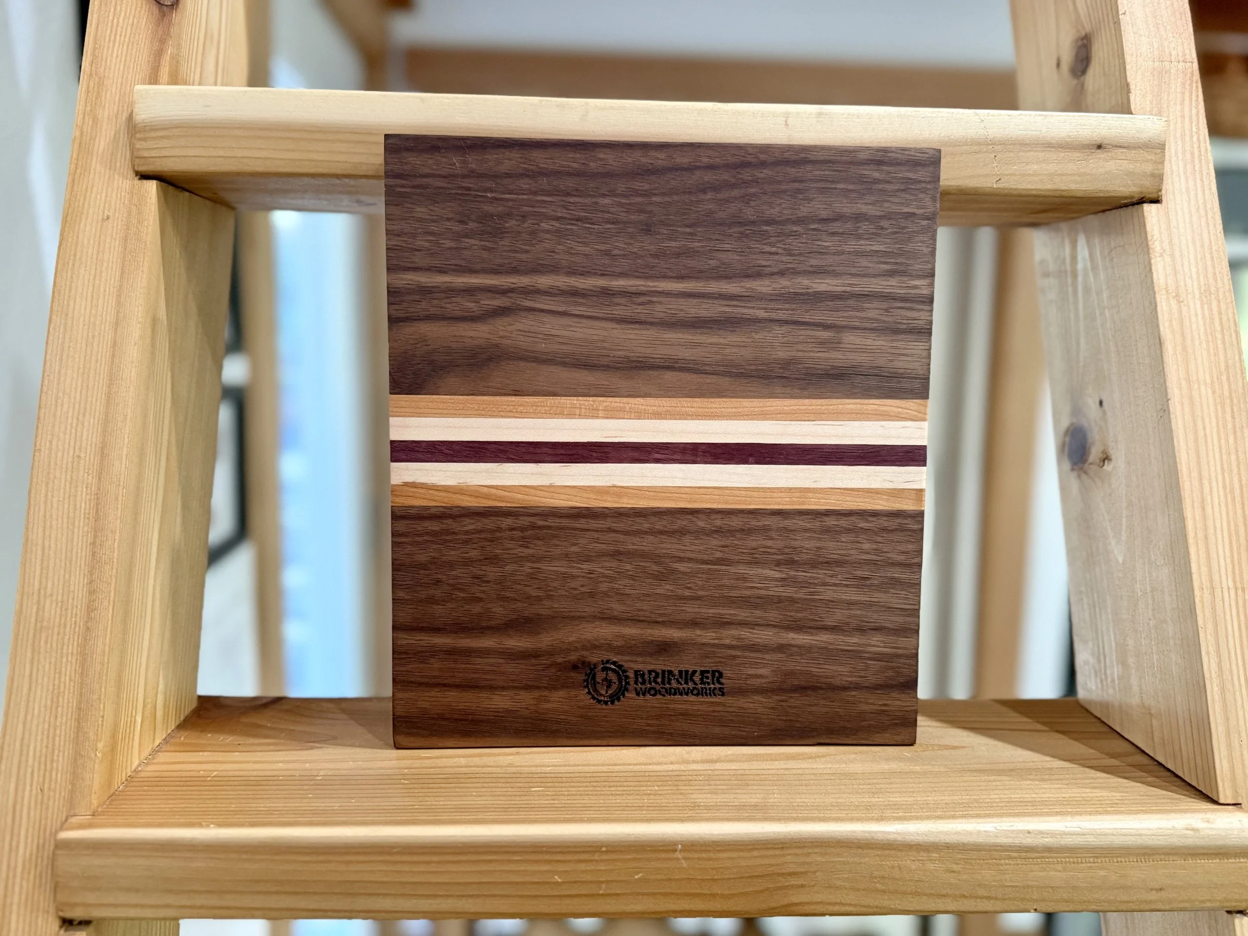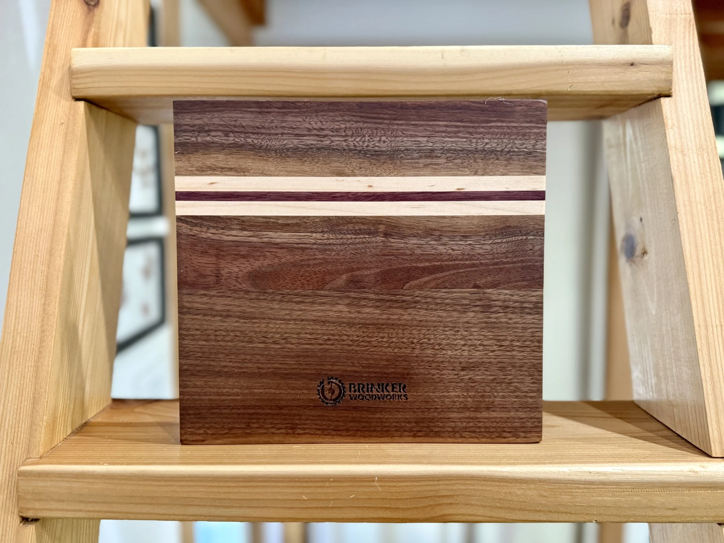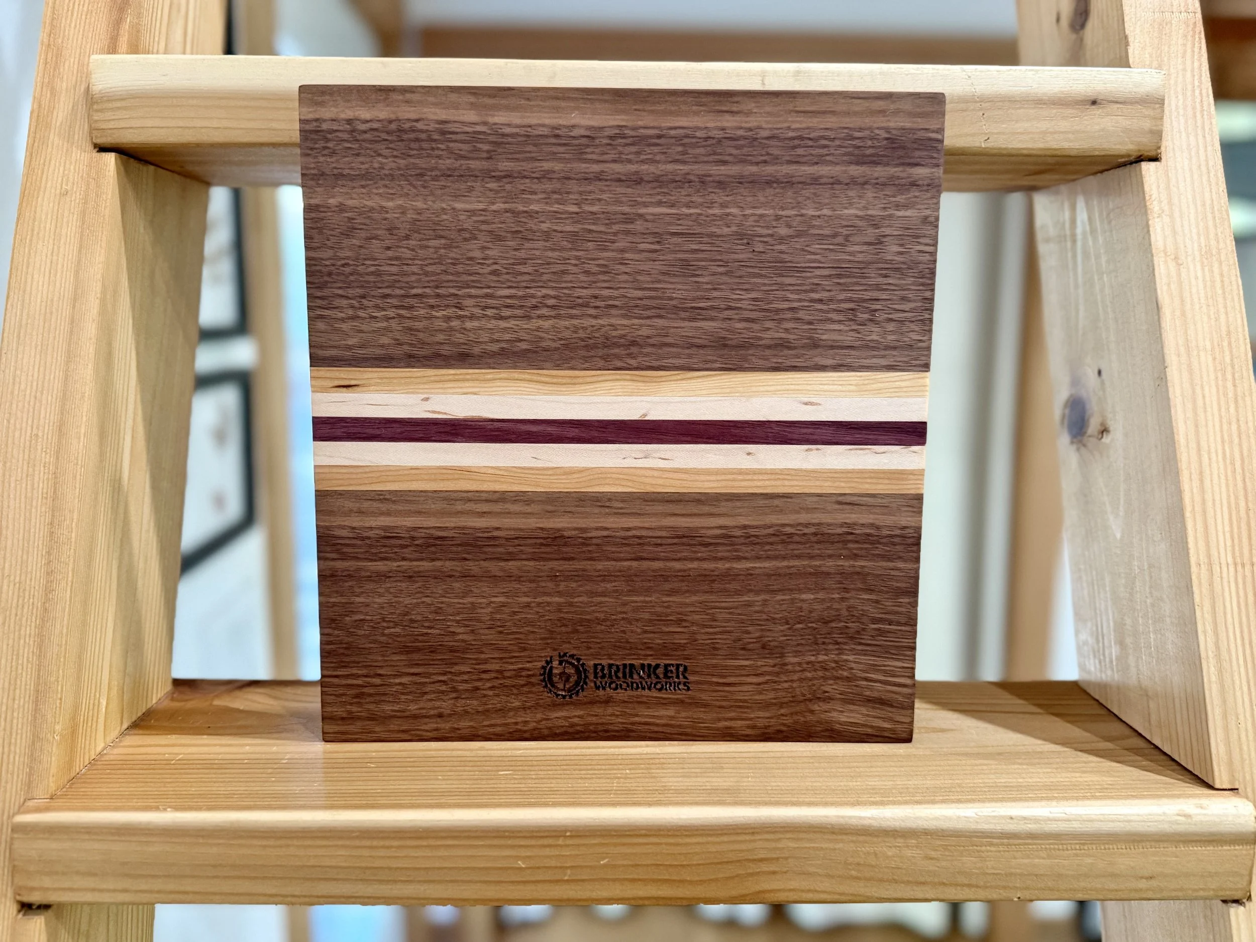 Categories: All Home Goods Cutting Boards Charcuterie Boards Signs Custom Order Products Shop All | Home Goods | Cutting Boards | Charcuterie Boards | Signs | Custom Order Products | Handcrafted Pet Urn - Walnut with Maple Paw Print Inlays and Splines $80.00 Purchase Added! End Grain Cutting Board - Walnut and Maple $200.00 Purchase Added! Walnut Keepsake Box with Maple Oregon Inlay and Matching Splines $70.00 Purchase Added! Walnut Keepsake Box with Maple Tree Inlay and Matching Splines $35.00 Purchase Added! Puzzle Piece - I Love You to Pieces Sign $17.50 Purchase Added! Puzzle Piece Charcuterie Serving Tray $30.00 Purchase Added! Inspirational Puzzle Piece $7.50 Love Faith Hope Family Purchase Added! Puzzle Piece Keepsake Tray - Large $30.00 Purchase Added! Puzzle Piece Keepsake Tray - Small $20.00 Purchase Added! Walnut Keepsake Box with Maple Splines $20.00 Purchase Added! Brinker's Bee Butter $8.95 Purchase Added! Custom Walnut Charcuterie / Decorative Cutting Board from $55.00 View Options Charcuterie - Decorative Face Grain Cutting Board from $50.00 Select Engraving Yes No Purchase Added! Charcuterie - Decorative Face Grain Cutting Board from $50.00 Select Engraving Yes No Purchase Added! Custom Made End Grain Cutting Board - 16"x12"x1.5" from $200.00 View Options Charcuterie - Decorative Face Grain Cutting Board from $50.00 Select Engraving Yes No Purchase Added! Handcrafted Mallet from $50.00 View Options Custom Coasters from $75.00 View Options Charcuterie - Decorative Face Grain Cutting Board from $50.00 Select Engraving Yes No Purchase Added! Sofa Armrest End Table $55.00 Add to Cart Added! Charcuterie - Decorative Face Grain Cutting Board from $50.00 Select Engraving Yes No Purchase Added! Charcuterie - Decorative Face Grain Cutting Board from $50.00 Select Engraving Yes No Purchase Added! Wedding Anniversary Signs $75.00 Purchase Added! Charcuterie - Decorative Face Grain Cutting Board from $50.00 Select Engraving Yes No Purchase Added! Charcuterie - Decorative Face Grain Cutting Board $50.00 Purchase Added!