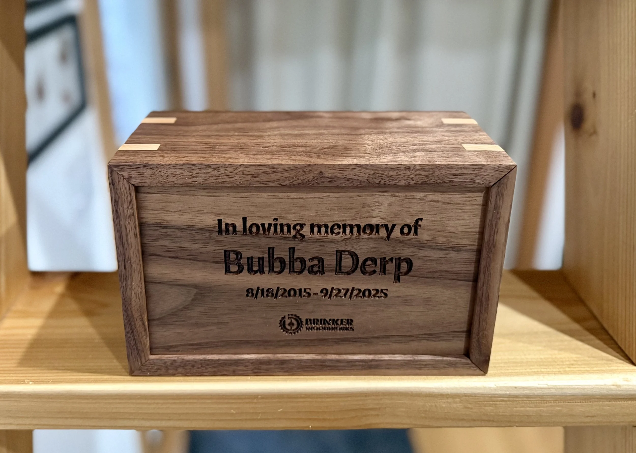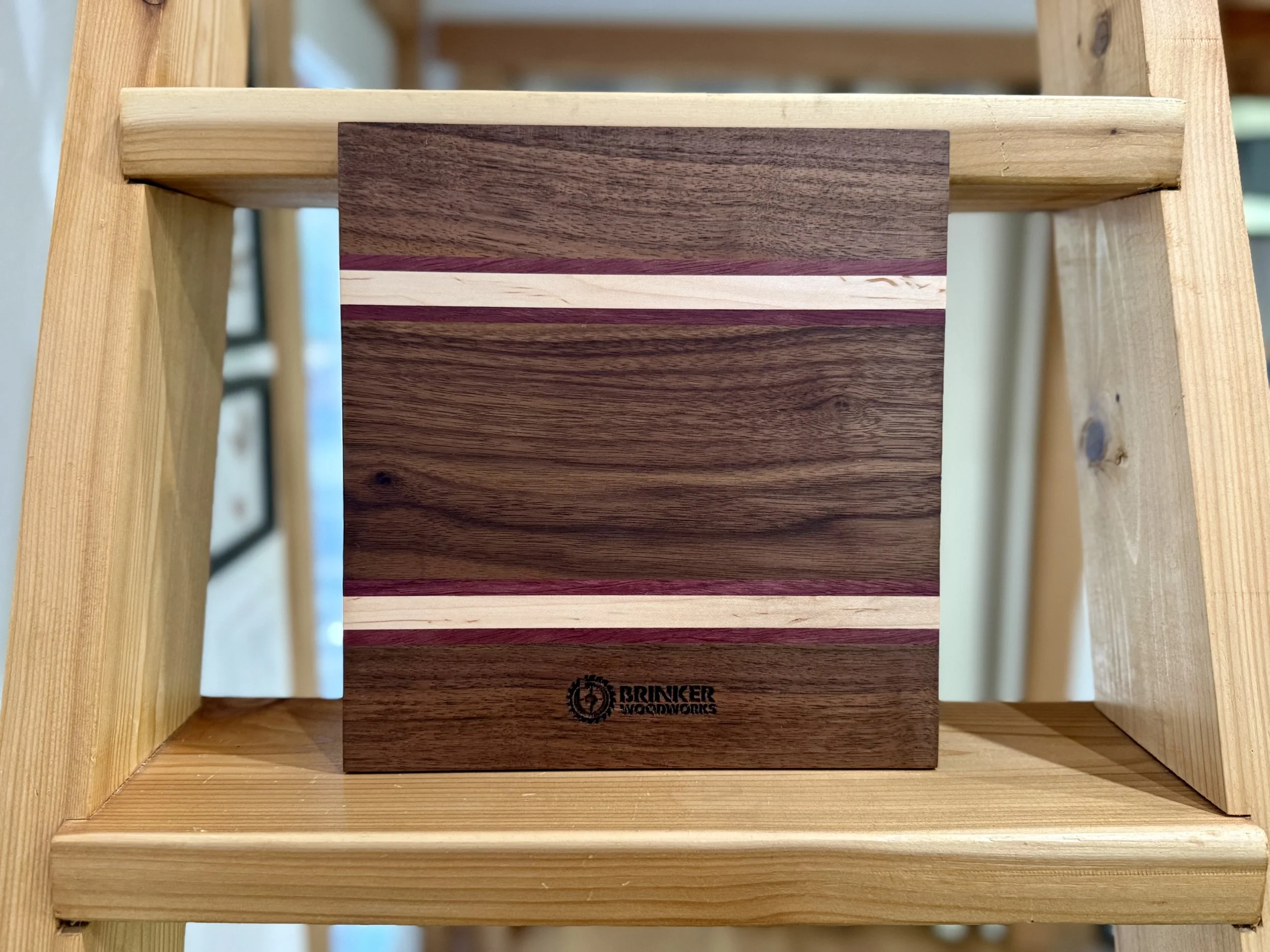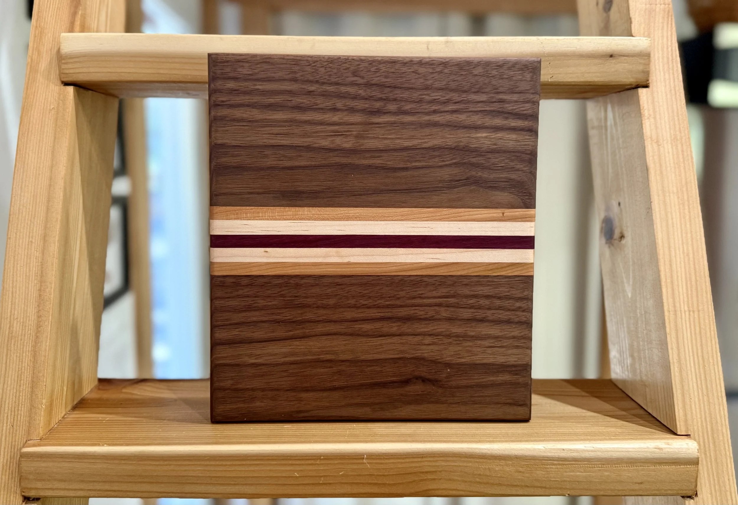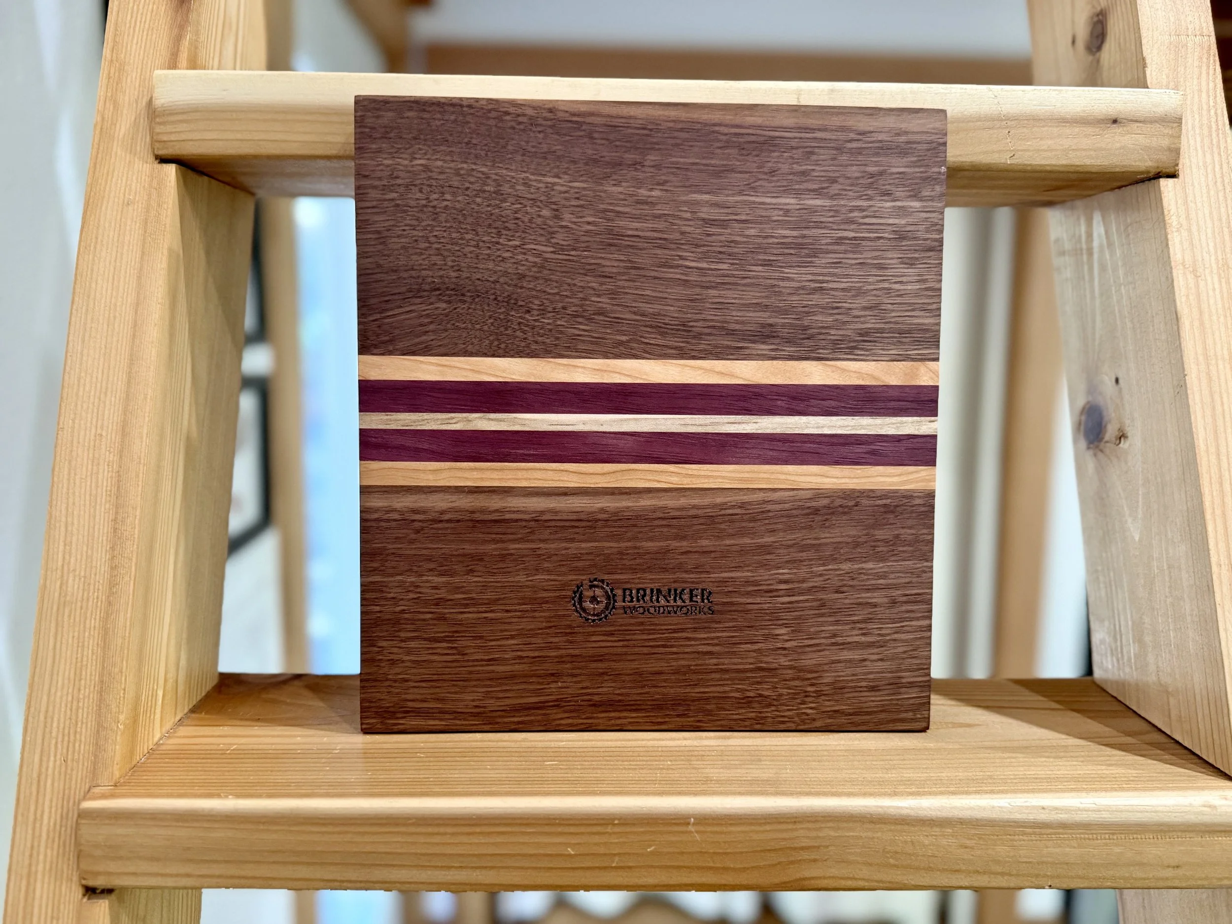 Categories: All Home Goods Cutting Boards Charcuterie Boards Signs Custom Order Products Shop All | Home Goods | Cutting Boards | Charcuterie Boards | Signs | Custom Order Products | Handcrafted Pet Urn - Walnut with Maple Paw Print Inlays and Splines $80.00 Purchase Added! End Grain Cutting Board - Walnut and Maple $200.00 Purchase Added! Walnut Keepsake Box with Maple Oregon Inlay and Matching Splines $70.00 Purchase Added! Walnut Keepsake Box with Maple Tree Inlay and Matching Splines $35.00 Purchase Added! Puzzle Piece - I Love You to Pieces Sign $17.50 Purchase Added! Puzzle Piece Charcuterie Serving Tray $30.00 Purchase Added! Inspirational Puzzle Piece $7.50 Love Faith Hope Family Purchase Added! Puzzle Piece Keepsake Tray - Large $30.00 Purchase Added! Puzzle Piece Keepsake Tray - Small $20.00 Purchase Added! Walnut Keepsake Box with Maple Splines $20.00 Purchase Added! Brinker's Bee Butter $8.95 Purchase Added! Custom Walnut Charcuterie / Decorative Cutting Board from $55.00 View Options Charcuterie - Decorative Face Grain Cutting Board from $50.00 Select Engraving Yes No Purchase Added! Charcuterie - Decorative Face Grain Cutting Board from $50.00 Select Engraving Yes No Purchase Added! Custom Made End Grain Cutting Board - 16"x12"x1.5" from $200.00 View Options Charcuterie - Decorative Face Grain Cutting Board from $50.00 Select Engraving Yes No Purchase Added! Handcrafted Mallet from $50.00 View Options Custom Coasters from $75.00 View Options Charcuterie - Decorative Face Grain Cutting Board from $50.00 Select Engraving Yes No Purchase Added! Sofa Armrest End Table $55.00 Add to Cart Added! Charcuterie - Decorative Face Grain Cutting Board from $50.00 Select Engraving Yes No Purchase Added! Charcuterie - Decorative Face Grain Cutting Board from $50.00 Select Engraving Yes No Purchase Added! Wedding Anniversary Signs $75.00 Purchase Added! Charcuterie - Decorative Face Grain Cutting Board from $50.00 Select Engraving Yes No Purchase Added! Charcuterie - Decorative Face Grain Cutting Board $50.00 Purchase Added!